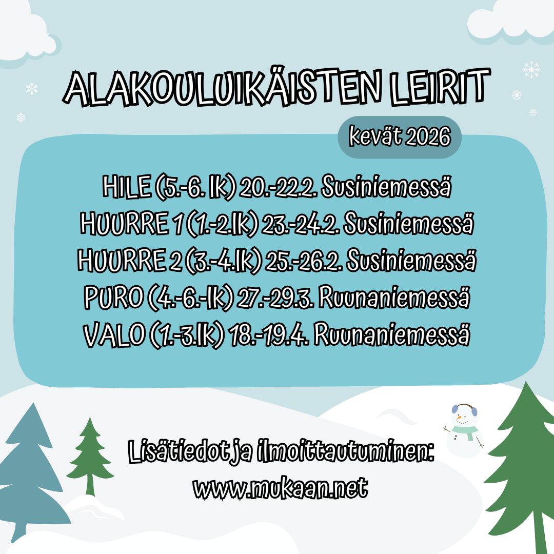 Ilmoittautuminen alakouluikäisten kevään leireille alkaa pe 16.1. klo 17.00!
